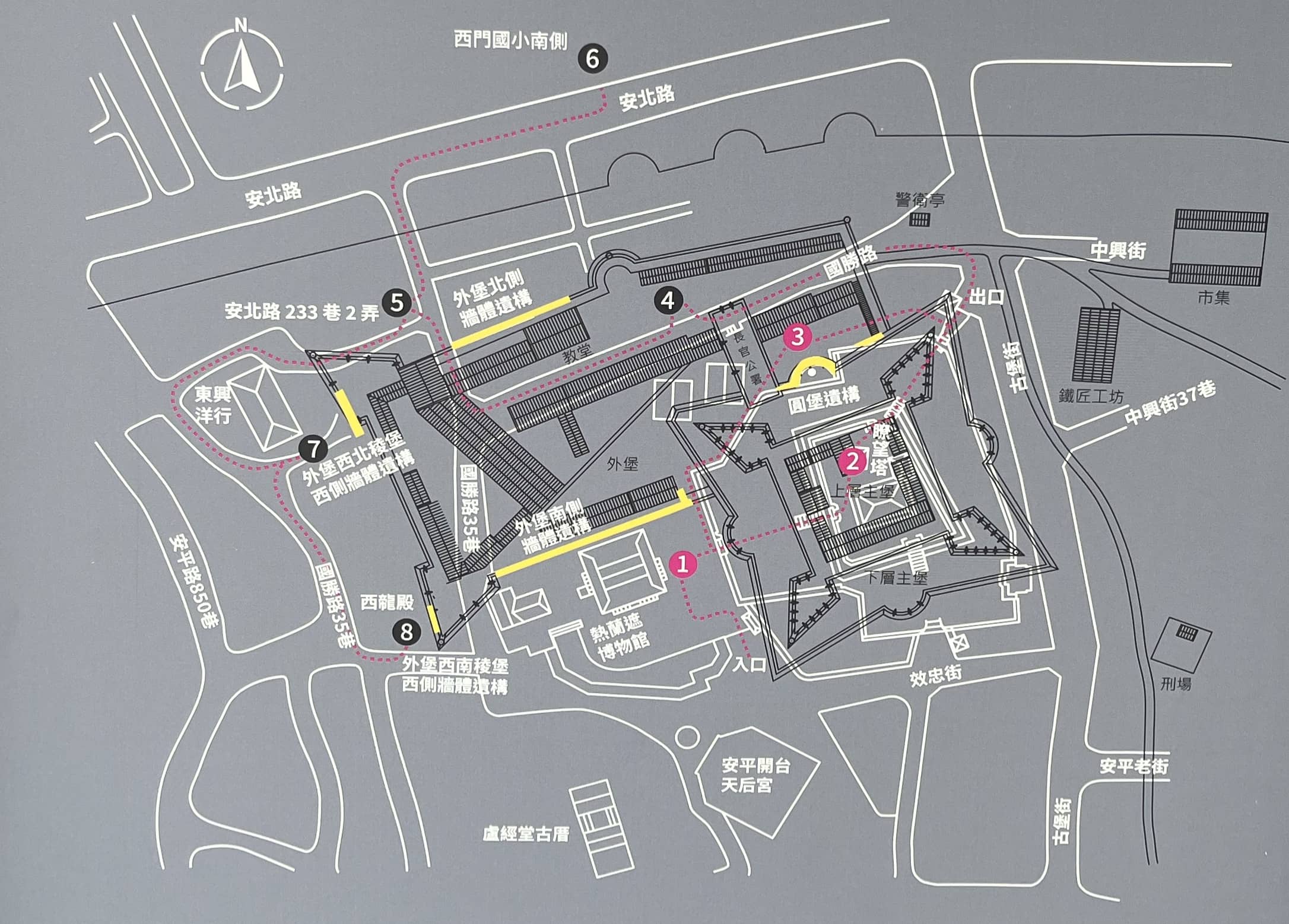 安平古堡和安平树屋之内也都有相关的台南历史展出,但实际上台史博在台湾早期历史对台南的描写也相当丰富。安平古堡是之前荷兰人所建的热兰遮城遗址,但相关的历史文物只有一面台南城墙,甚至荷兰人的遗迹基本上已经毫无痕迹。安平古堡周边有很多“民族英雄郑成功”的塑像。