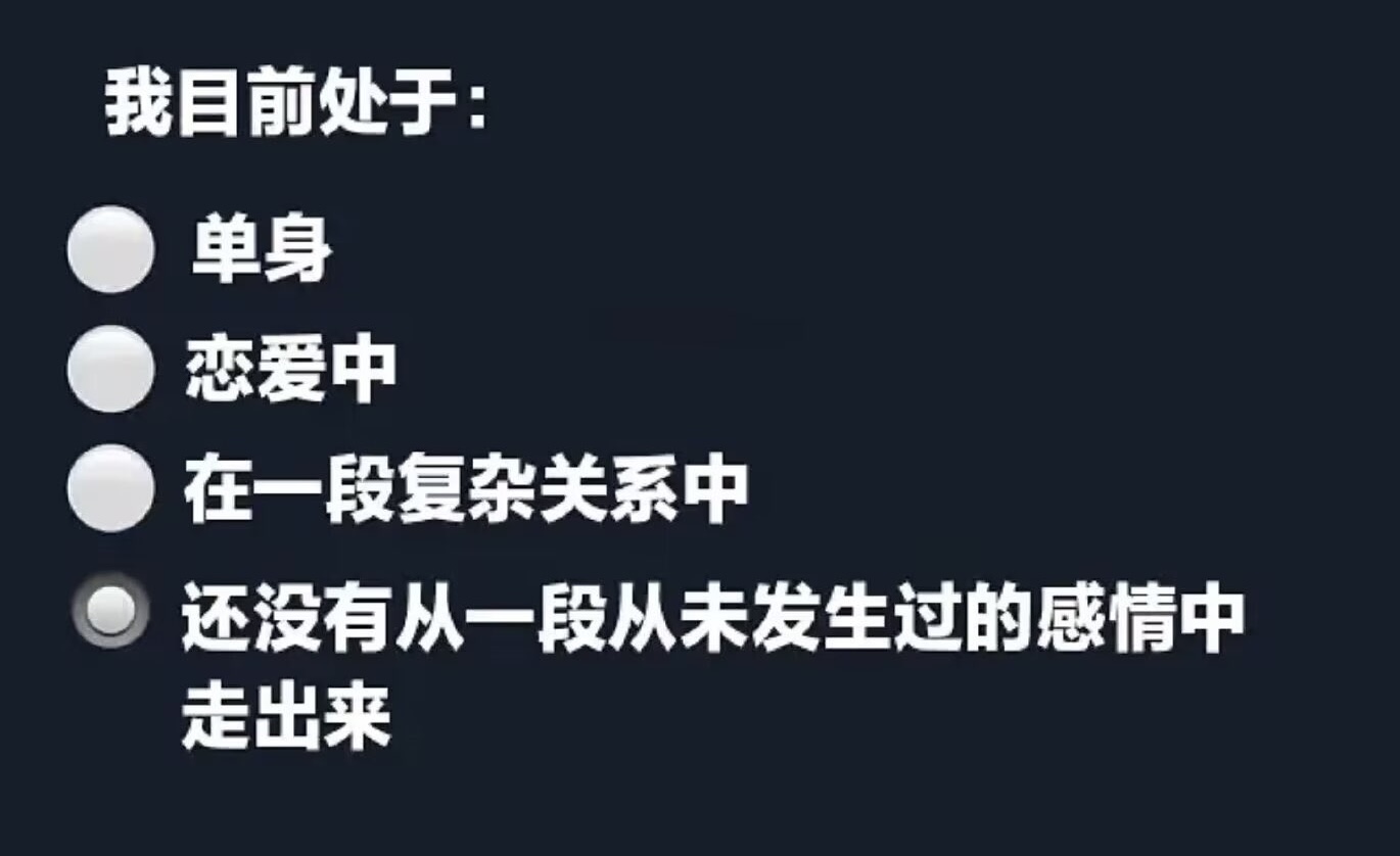 之前在亲密关系中确实我自己是非常疏离的,希望能够“兄弟爬山各自努力”,结果反手被安利he’s not that into you,现在更像是翻过来,渴求着亲密关系与情绪价值,但从外观上来看还是逻辑大于一切的INTJ。